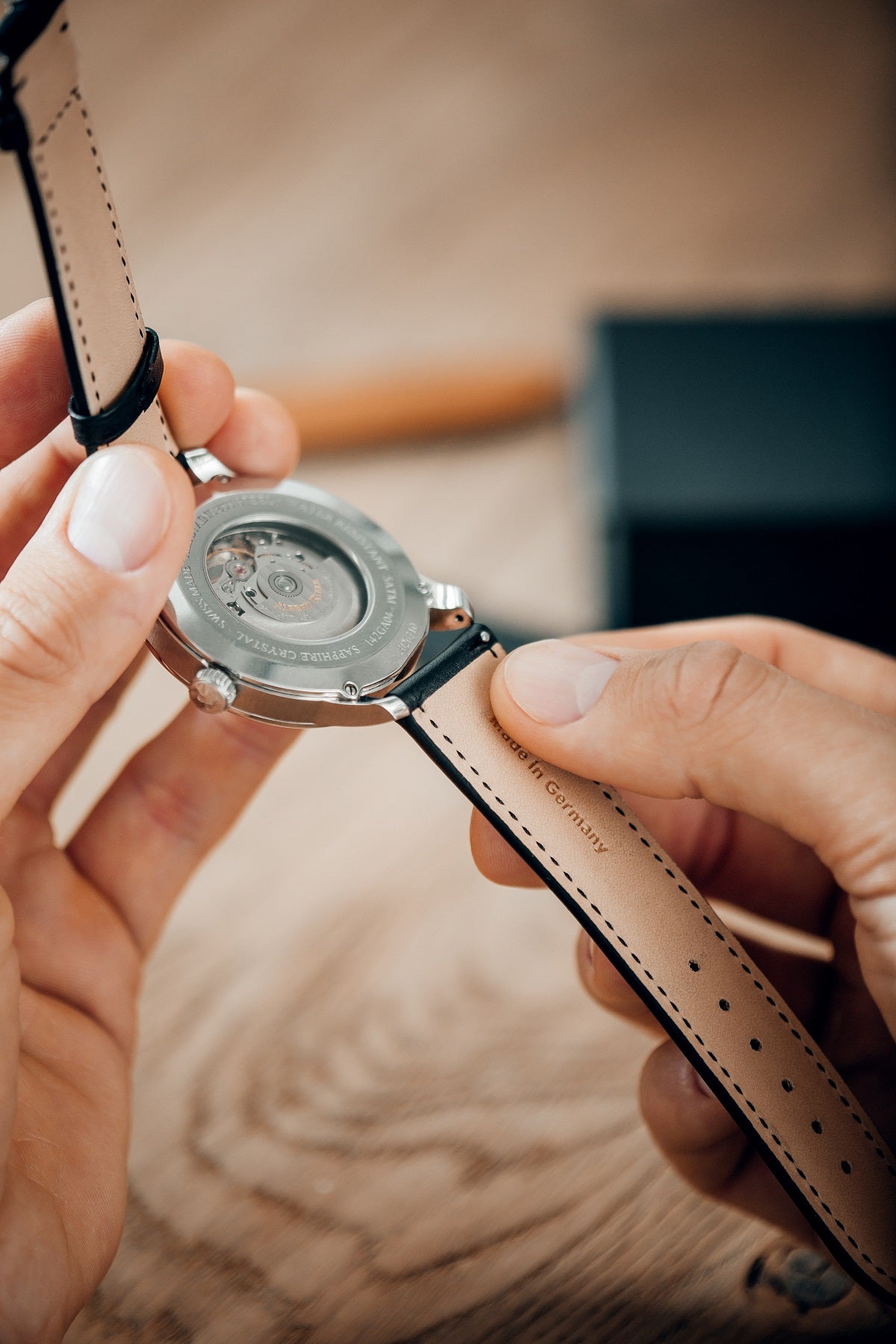 I am impressed with the quality of the leather strap. Have been using it now every day for almost a month. Good calfskin, stitching done well, don't even notice the electronics in the strap. - Hugo from Sweden